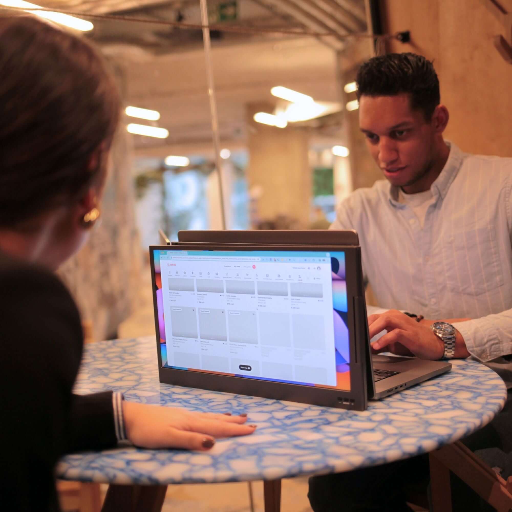 Introducing Flex Pro 15.6": effortlessly place it to the back of your Mac or Windows laptop with its integrated kickstand. Connect it with a single USB cable and watch as your three-screen workstation springs into action.